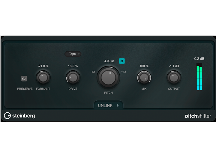 实时创意或校正的音高移位,保留形式音,饱和 模式,立体声解耦,以及广泛的 ±24 半音范围。