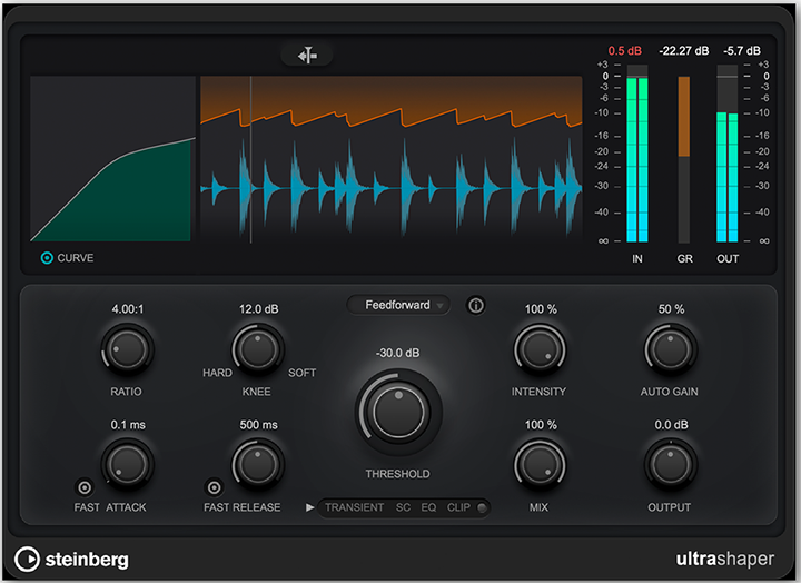 自动补偿压缩机,带有 EQ、限 制、瞬态控制和 EQ 塑形。